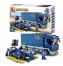 Транспортный автопарк представлен тремя красочными гоночными автомобилями, которые управляются тремя гонщиками. Для создания полной картины автогонок в комплект добавлено офисное здание. В нем расположены место для судьи соревнований и для болельщиков, телеэкран с онлайн-трансляцией соревнования, пит-стоп для оказания технической помощи автомобилям: их ремонту, замене колес, дозаправке, отдыху водителям гоночных автомобилей.